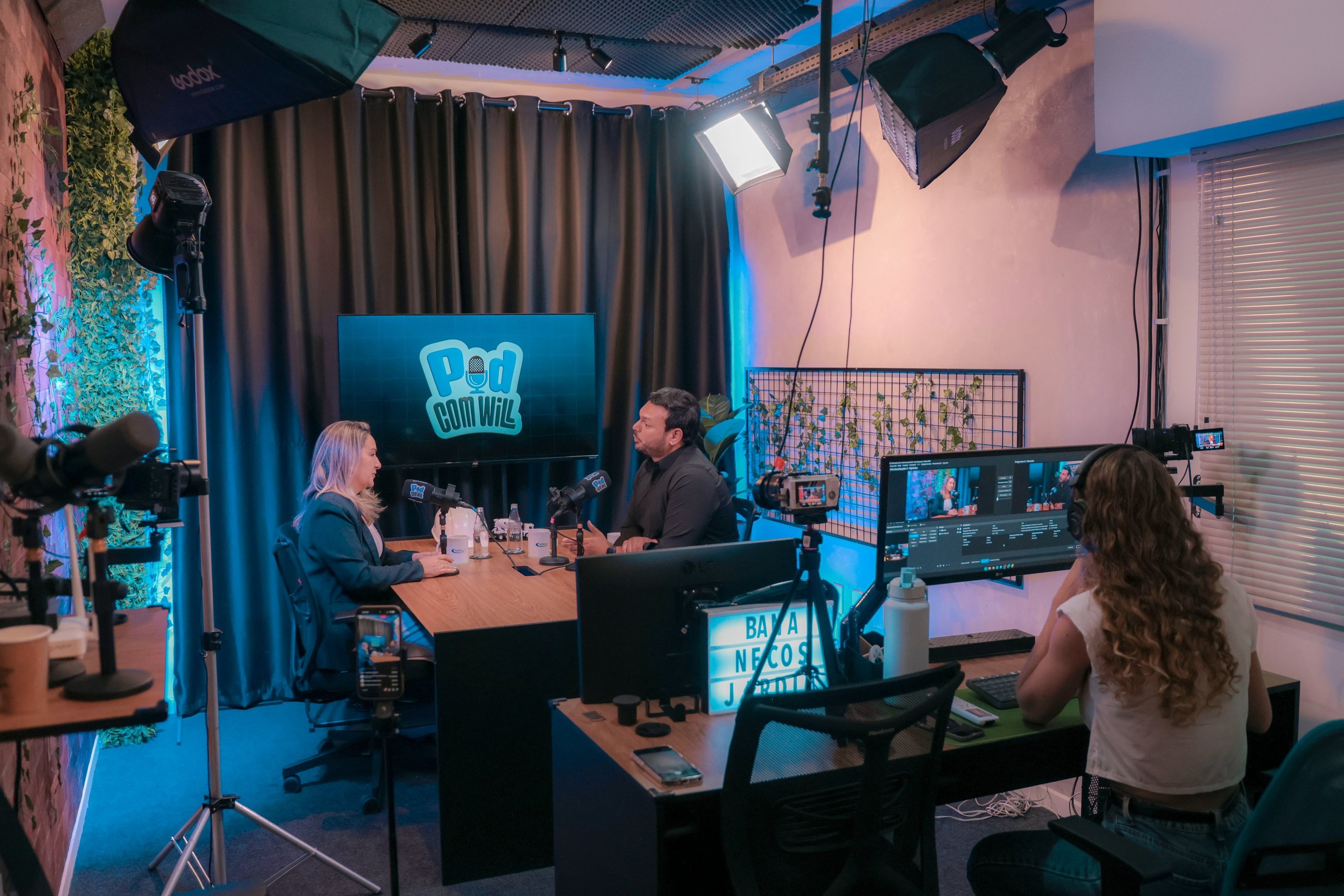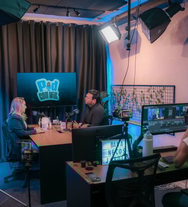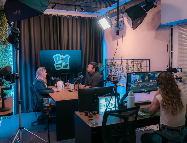 Produção em vídeo para YouTube e cortes para redes sociais, além de áudio para Spotify e plataformas de podcast.